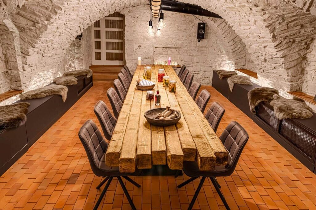 S radosťou poskytneme priestor Vašej oslave alebo pracovnému stretnutiu. Objavte s nami historické podzemie doma u nás – pivnicu. Pivnica ponúka nádherný priestor pre súkromné posedenie vo dvoch samostatných miestnostiach s dlhými drevenými stolmi s kapacitou 18 a 12 osôb. Atmosféru pivnice dopĺňa príjemné sedenie pri krbe.